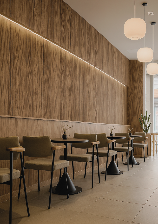 Dekor paneli od prirodnog bambusa – fleksibilni, lako se kroje i postavljaju direktno na zid uz pomoć silikona, bez bušenja. Prodaju se po komadu dimenzija 280×122 cm. Dostupni su u više od sto različitih dezena – imitacije mermera, drveta, tapeta, mikrocementa, metala i mnogih drugih. Savršena su zamena za zidne pločice i idealan izbor za moderan i topao enterijer.